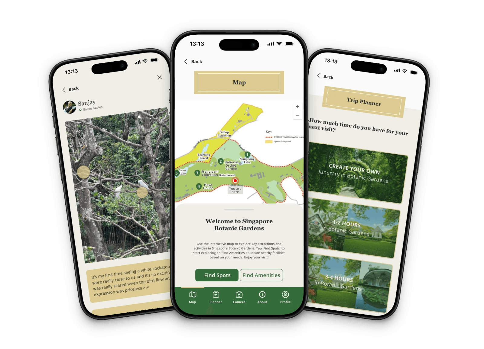 Singapore Botanic Gardens welcomes 4.5 million visitors annually, yet most follow identical routes to popular attractions, missing most of the 82 hectare UNESCO World Heritage Site. Working with two other UX designers, we designed a discovery platform that helps visitors explore based on their interests, not just what's familiar.